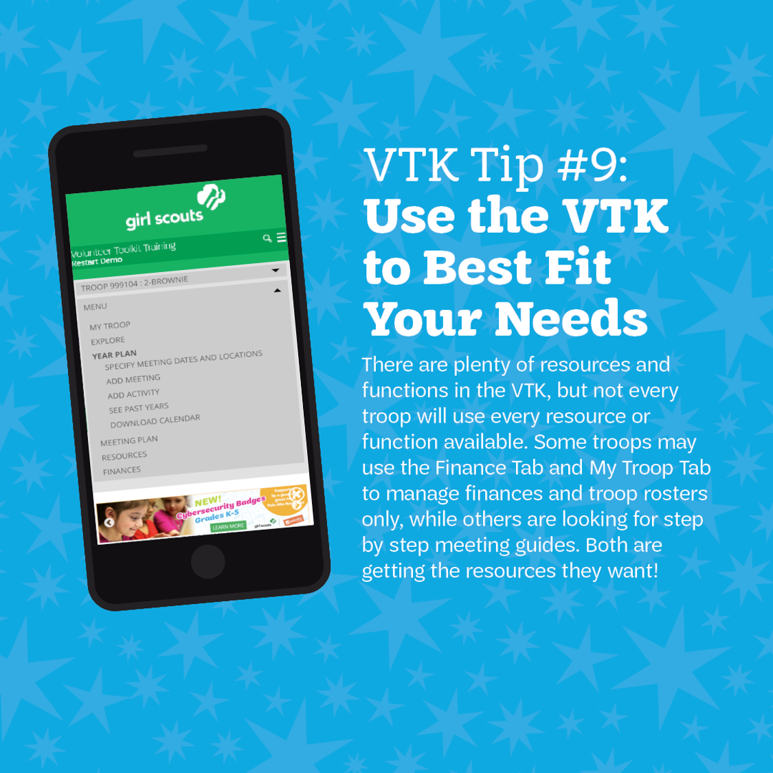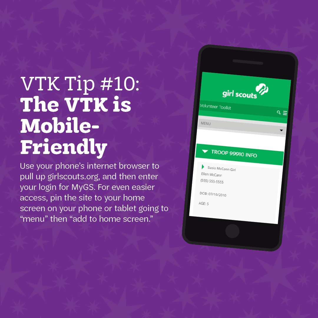 The Volunteer Toolkit (VTK) is one of the most valuable resources for our volunteers, helping you to stay organized and in communication with your troop and parents. Check out the 10 tips below to make sure you’re getting the most out of the VTK.