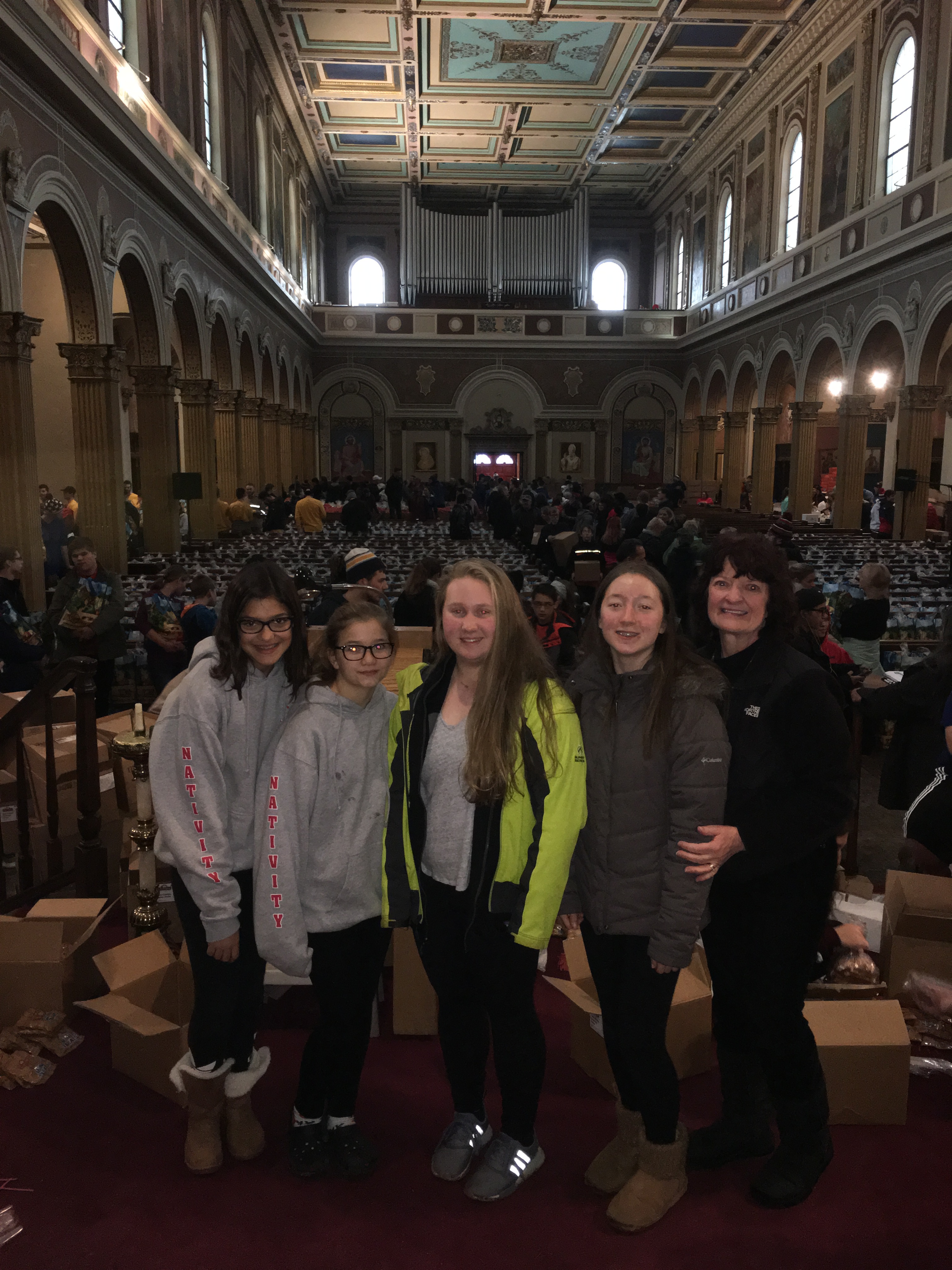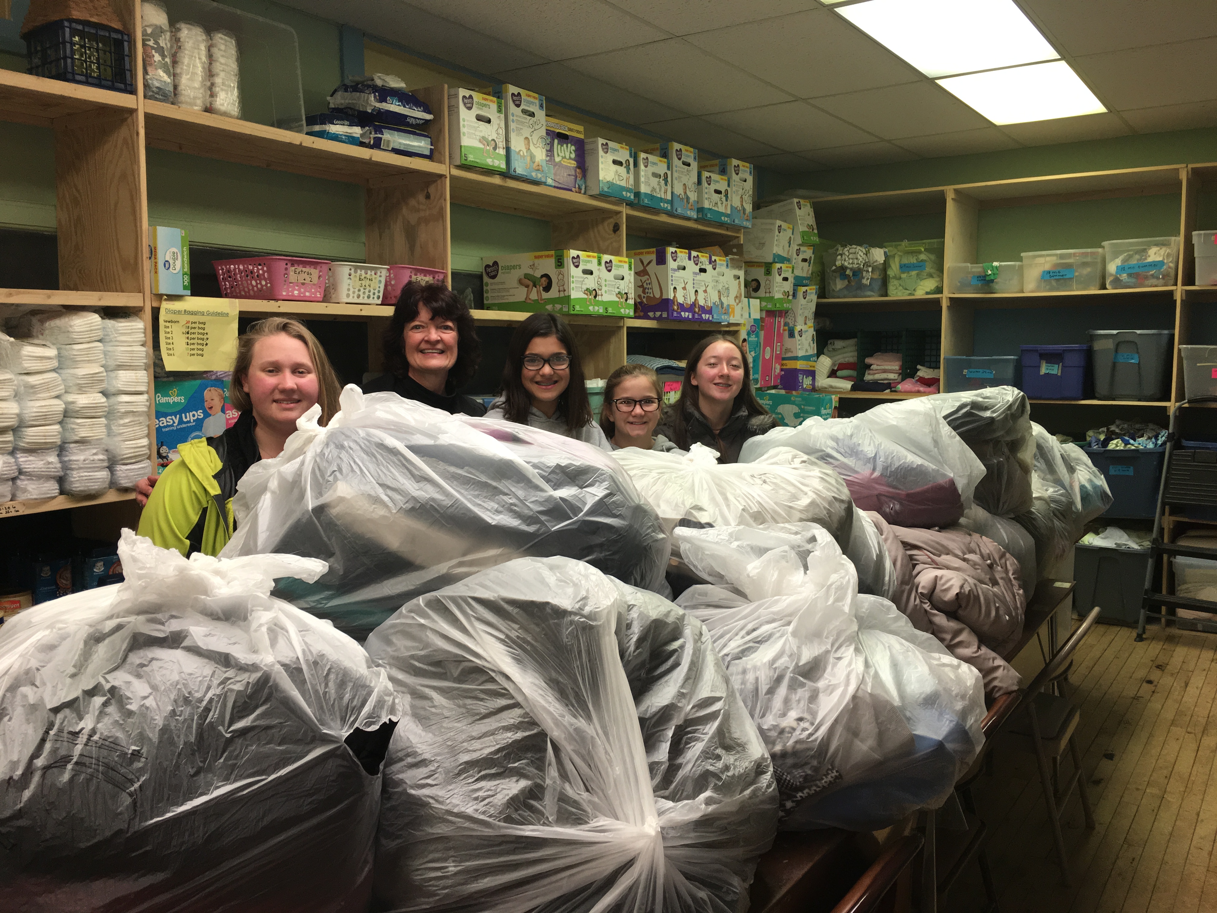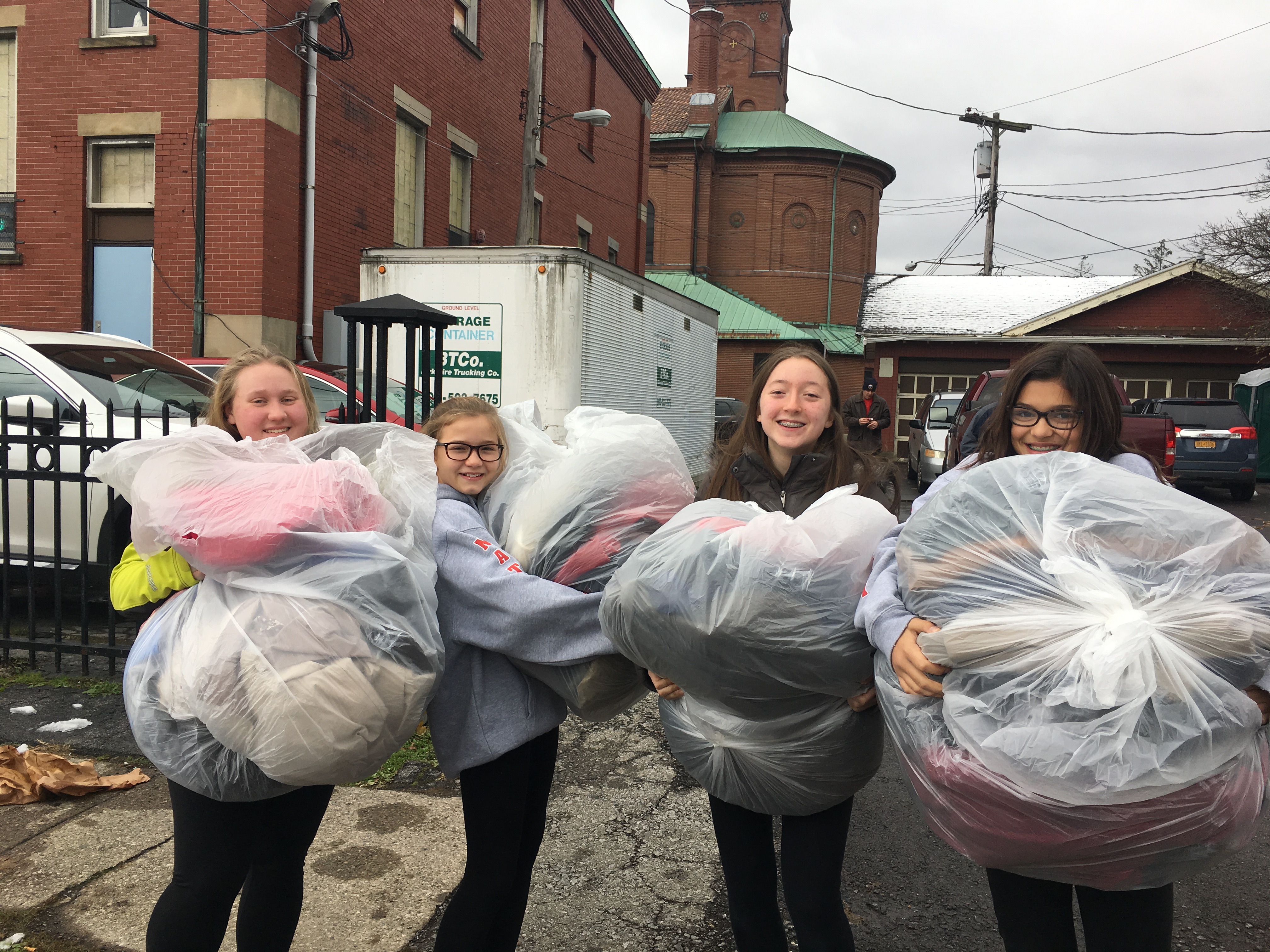 Because of the organization and work from the Girl Scouts and the generosity of the church, 265 coats were disbursed to the Harvest House, International Institute of Buffalo, and St. Luke’s Mission of Mercy. Caroline, Kaitlyn, Mia, and Natalie went to two of these facilities and got to see the results of their charitable work firsthand.