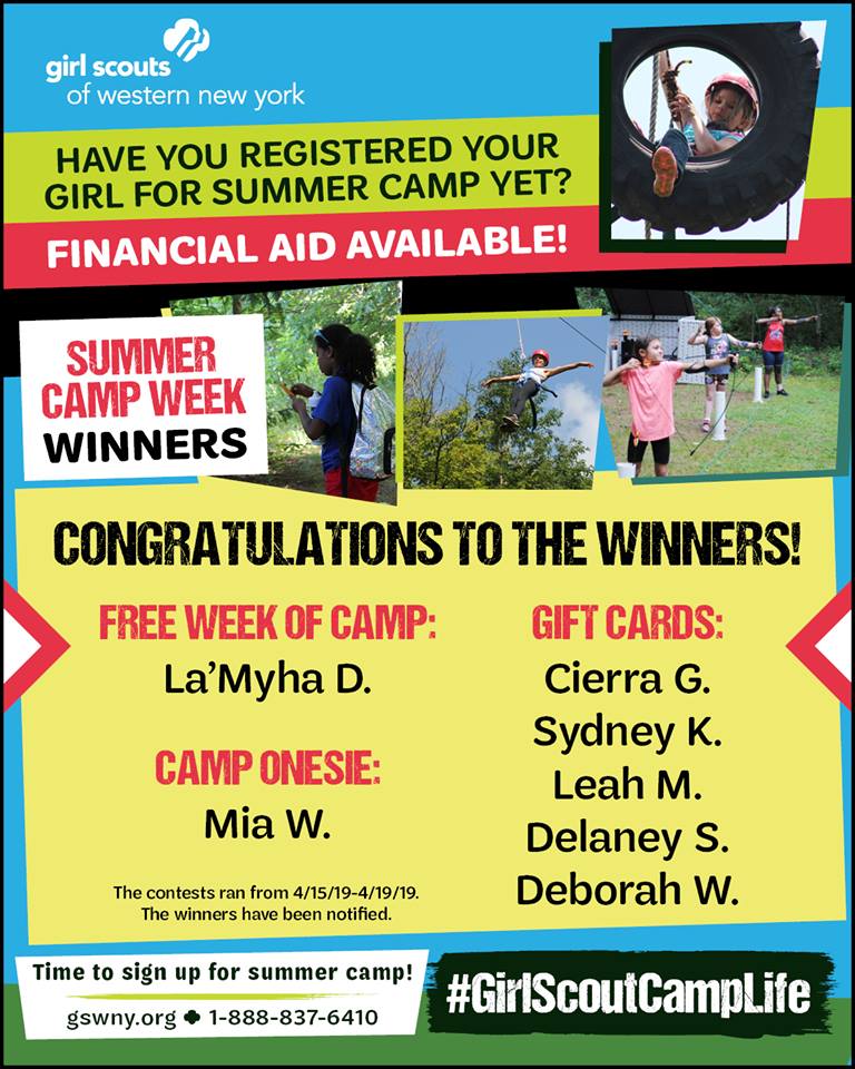 Last week we held our annual Girl Scout Camp Week and we had a blast! Thank you to everyone who answered trivia, registered for camp, or showed of how much you love camp by sharing this image or posting pictures in your camp gear!