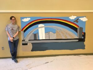 She spent many hours researching foster care in Monroe County and working with different organizations to get the project and mural design approved. Once the details were finalized, Emma spent four days painting the mural.