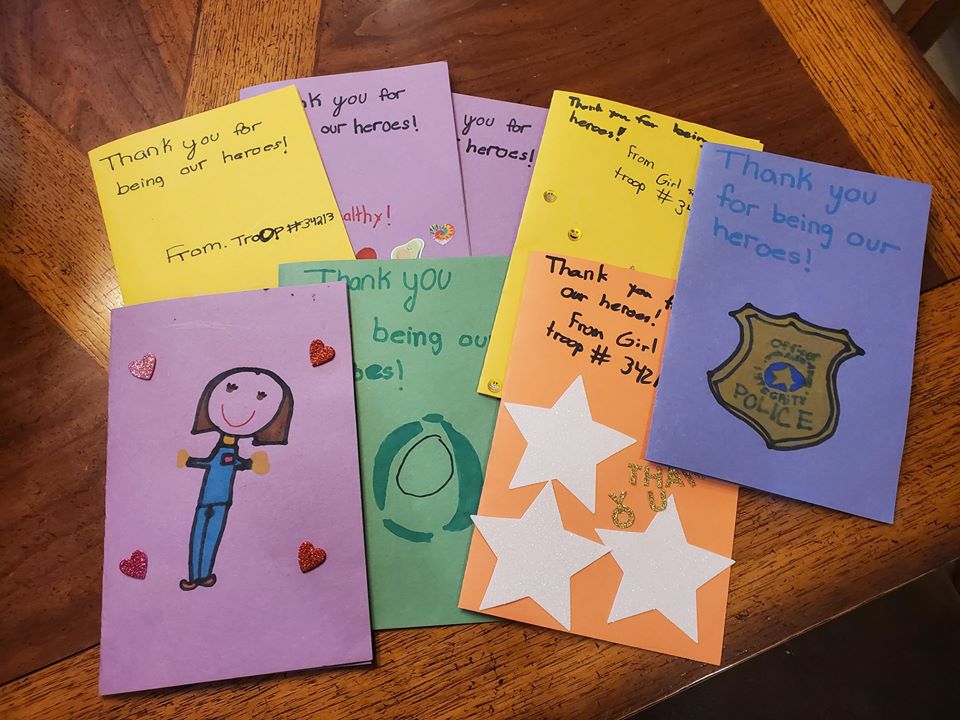 Girl Scout Troop 34213 donated 100 boxes of cookies to make care packages for their parents that are first responders to take to work and share with their hard working coworkers. Some of these places include Lackawanna Police, several Buffalo Fire Stations and Millard Fillmore nurses. Thank you to all the first responder heroes!