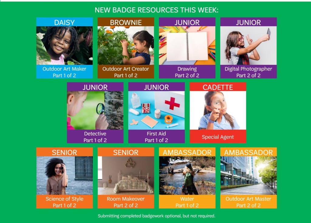 Looking for ways to stay involved with Girl Scouts? Check out our Girl Scouting at Home page today! We regularly add new resources, including new Virtual Badge Work for all Girl Scout Levels on Thursdays!