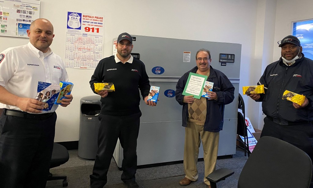Western New York’s Girl Scout Troop #30824, with support from Bender’s Technical Detailing, Inc. of Tonawanda, provided a special and delicious cookie donation this week to NFTA Metro’s constant responders. One of the Troop’s Girl Scouts is Metro Supervisor Luis Rodriguez’s daughter, Aubriella. The Troop wanted to express their gratitude to everyone for their hard work in serving our community during the COVID-19 health emergency.