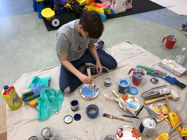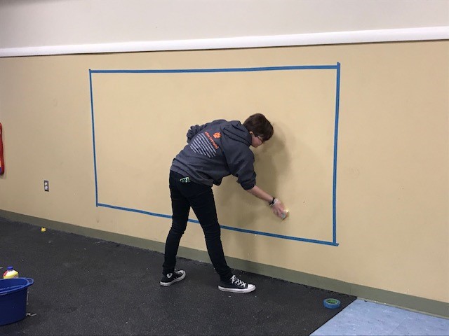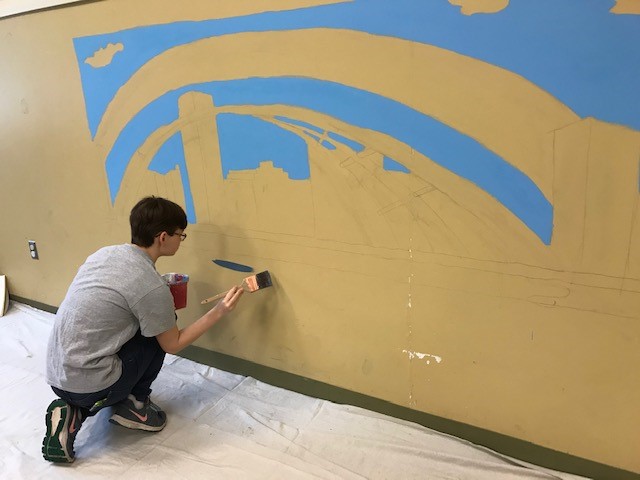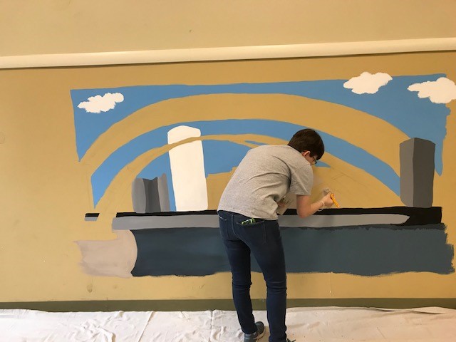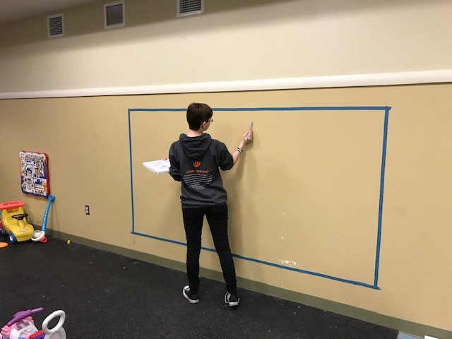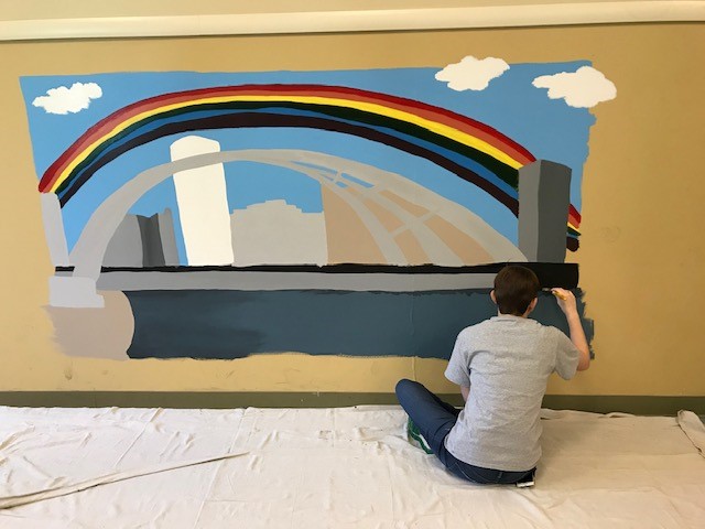 Emma explained, “I had to do research about foster care in Monroe County and how to paint a mural. I’d never painted something so large before! I had to connect with staff at the Society for the protection and Care of Children, the Monroe County Department of Human Services, Girl Scouts of Western NY, and other professionals. I submitted personal designs and got approval from the county to begin painting. I used the money I had earned in Girl Scouts selling cookies over the past ten years to fund my project and purchase the supplies I needed, then there was the painting itself, which I did over a four-day period.”