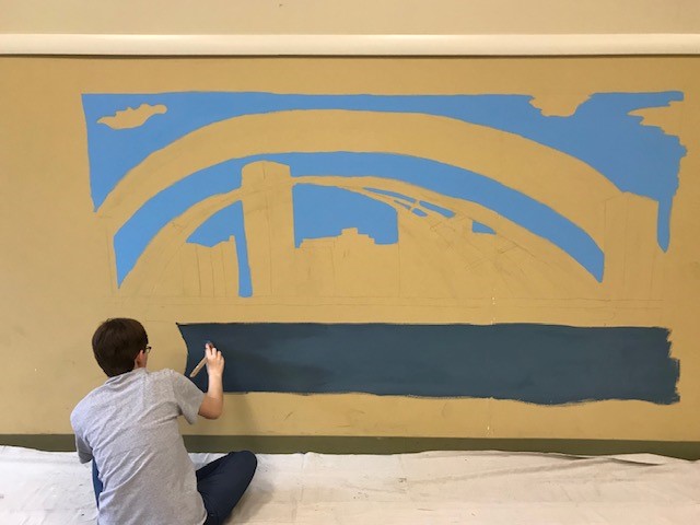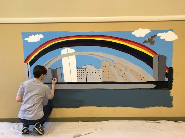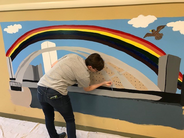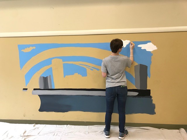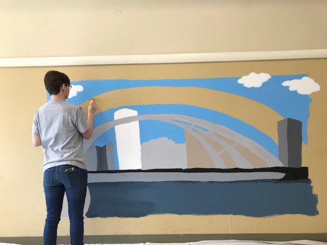 Her mural is of the downtown Rochester skyline and features landmark buildings and the Frederick Douglass-Susan B. Anthony Memorial Bridge that stretches over the Genesee River.
