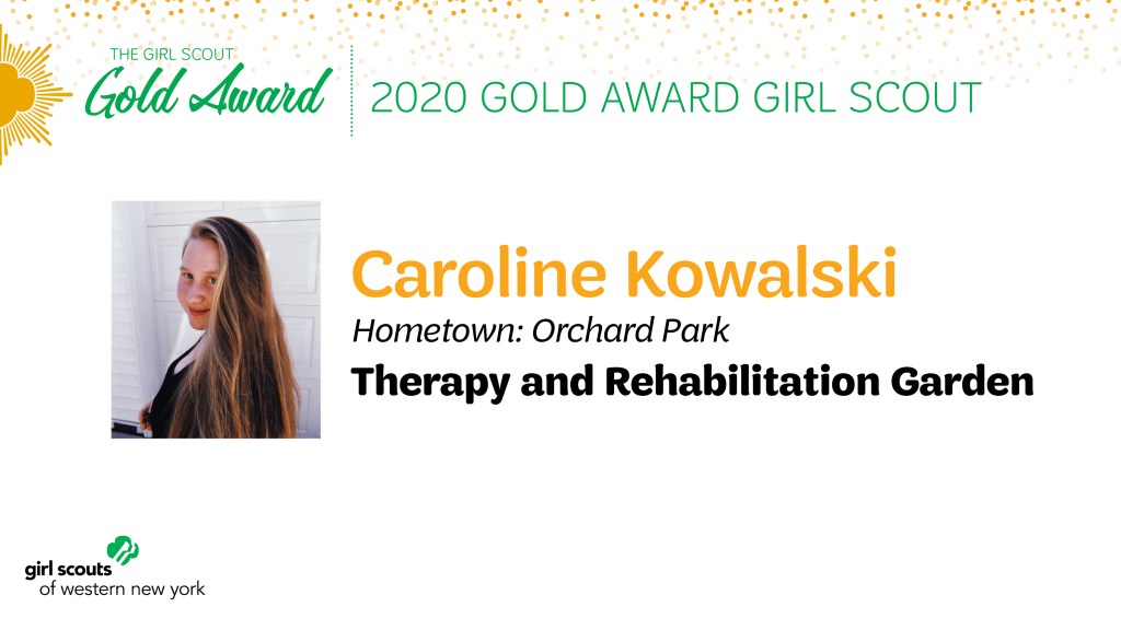 Girl Scouts of Western New York is proud to announce Caroline Kowalski of Orchard Park, NY, as a 2020 Gold Award Girl Scout. Kowalski’s project, Therapy and Rehabilitation Garden, which focused on creating two wheelchair-accessible garden beds. The beds are made of cedar wood, which is naturally bug and rot resistant, meaning they can last up to 15 years without wood treatment.