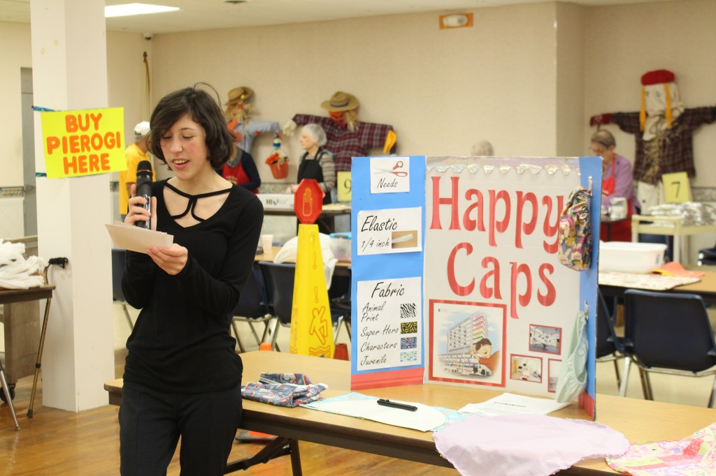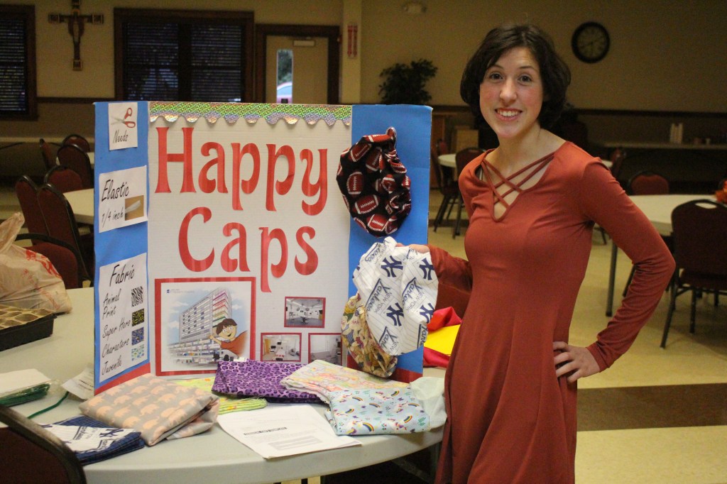 Klipfel got the pattern and instructions from the NYS Federation of Home Bureaus. She collaborated with Girl Scout Troop 30782 and the American Sewing Guild to receive donations of materials and for teams to sew the caps. Members of the St. Jude the Apostle Church also helped sew the caps.