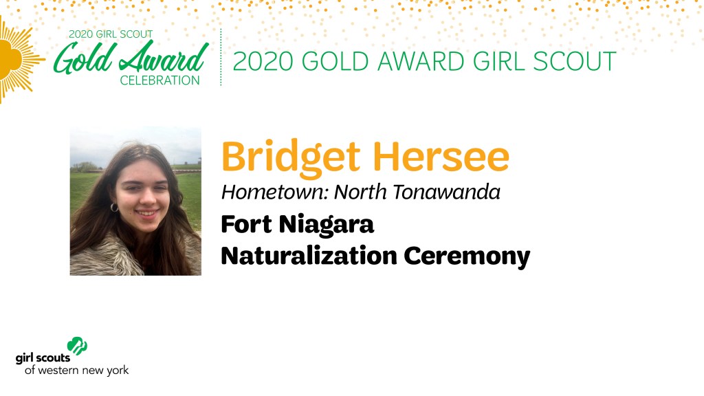 Girl Scouts of Western New York is proud to announce Bridget Hersee of North Tonawanda, NY, as a 2020 Gold Award Girl Scout. Hersee’s project, Fort Niagara Naturalization Ceremony, involved coordinating a Naturalization Ceremony at Old Fort Niagara with the United States Citizenship and Immigration Services and the Old Fort Niagara Staff.