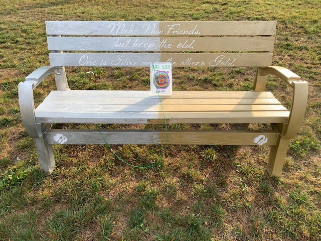 Troop 30554 finally finished and dedicated their Bronze Award project – Make New Friend bench at Glendale Elementary School. Each girl painted and learned how to use a drill to make this beautiful bench. They hope the youth use it as a way to break the ice when making new friends and feeling included. There are ice breaker games attached to it also.