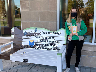 Rush-Henrietta Senior Girl Scout Lauren W. made book-themed benches for her Silver Award project for the Henrietta Public Library patio! Looks like a lovely place to kick back with a good book!