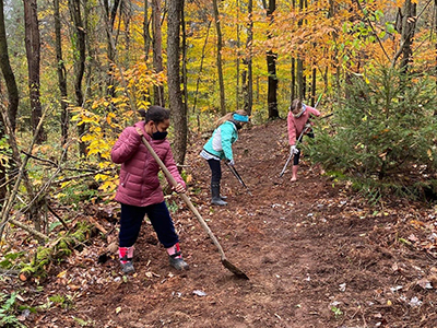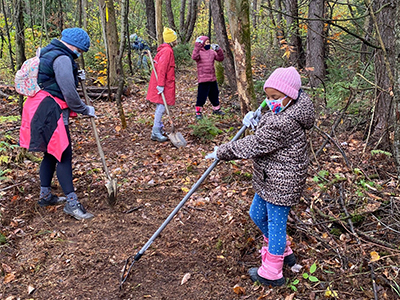 On October 24, Girl Scout members gathered at Camp Seven Hills to assist with a trail maintenance and development project. Here are two pictures submitted by Troop 30656.