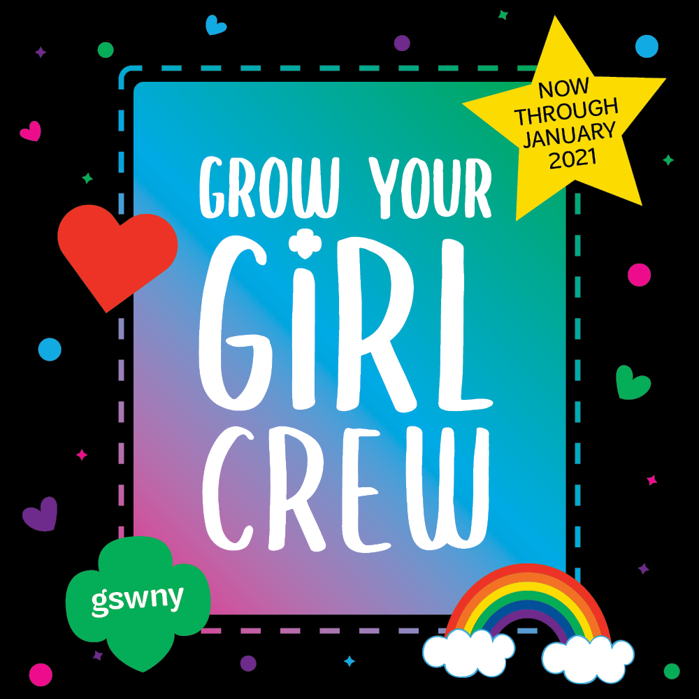 Now more than ever, your girl needs friends to share and create memories with, through in-person and virtual events. That’s why we’ve created the Grow Your Girl Crew challenge for members, so your girl can invite friends to join Girl Scouts, make new friends in the process, and even win prizes. Use the button below to learn more about the campaign, including what girls and adults win and how to participate