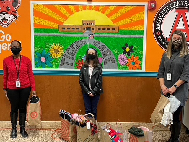 Juliette Girl Scouts from Amherst Gabriella McCann and Patricia Fuller (not pictured) recently organized a neighborhood Winter Warmth Drive for children in need at Windermere Blvd. Elementary School. Approximately 50 hat and glove sets were donated. December happens to be Empathy Month for students and staff at the school.