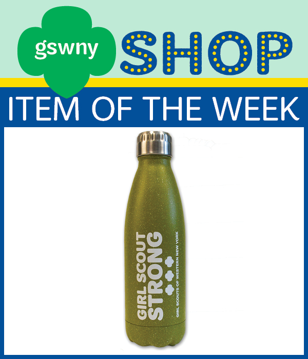 A design so cool it will quench your thirst! This lightweight and conservative green 10″ water bottle has a twist lid that’s vacuum insulated. We love the GSWNY white lettering too. Together we are Girl Scout Strong!