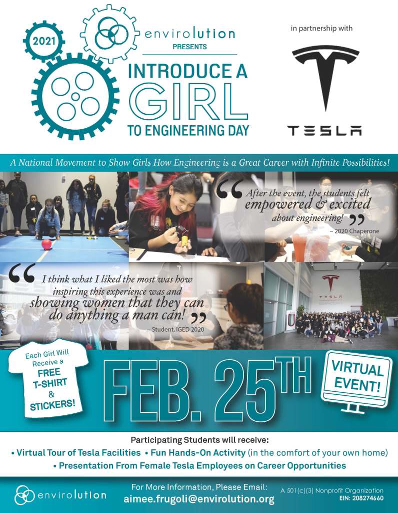 Free Virtual Program and Kit: Introduce a Girl to Engineering Day presented by Envirolution in Partnership with Tesla
