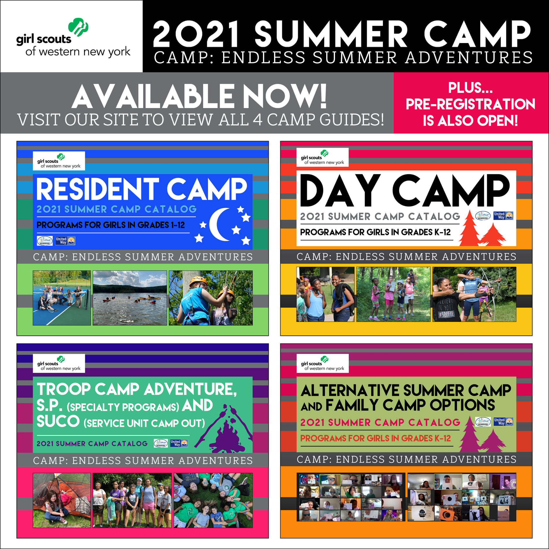 If you haven’t already read the camp newsletter, please do that first. It explains multiple vital pieces of information regarding the summer camp process for 2021. Once you’ve finished that, it’s time to review the camp guides and pre-register for camp (and earn that sweet, exclusive summer camp patch for pre-registered girls ONLY)!