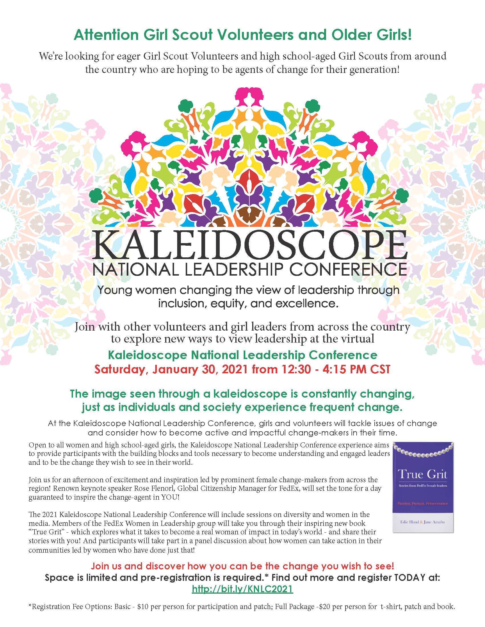 The 2021 Kaleidoscope National Leadership Conference will include sessions on diversity and women in the media. Members of the FedEx Women in Leadership group will take you through their inspiring new book “True Grit” – which explores what it takes to become a real woman of impact in today’s world – and share their stories with you! And participants will take part in a panel discussion about how women can take action in their communities led by women who have done just that!