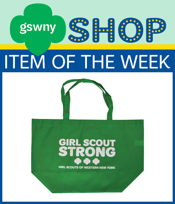 We love this classic recycling bag with Girl Scout Strong and GSWNY details! Perfect to keep your Girl Scout cookie season items together or a Troop Co-Leader organized. This bag even makes a great gift bag to put a present inside for your favorite Girl Scout. Go green in style!