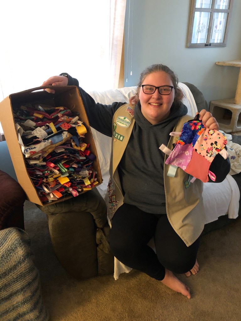The Girl Scouts set out to help Golisano Children’s Hospital’s child life team. Their original goal was to create 100 tag or sensory blankets. So how many did the girls make? A WHOPPING 386!!!