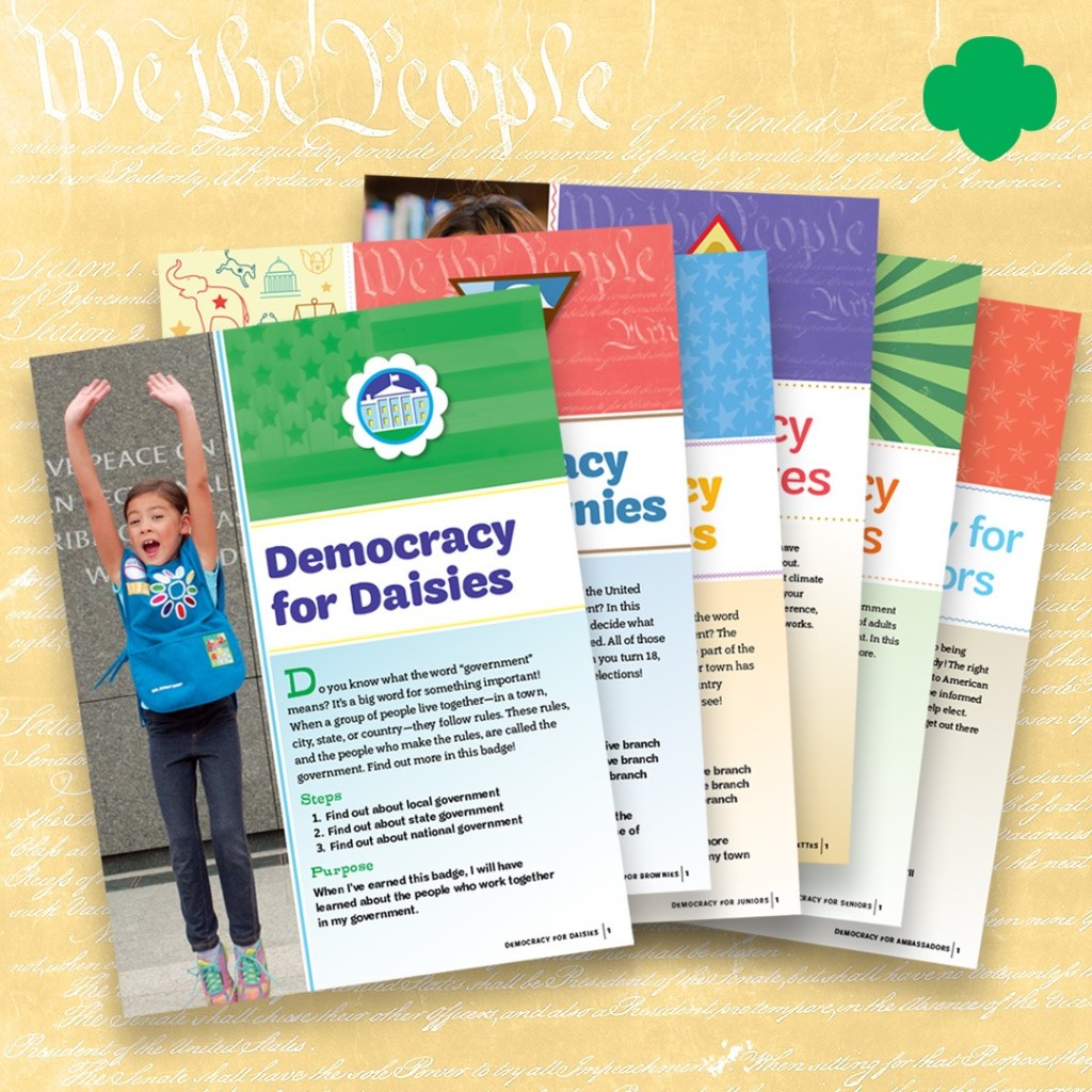 As we transition to a new era of U.S. leadership, we want to encourage all girls to be informed citizens so they can become the change-makers of the future. Now through February 4, Girl Scouts is making the booklets and requirements for our Democracy badges free for all to download. With this support, girls will learn about their federal, state, and local governments, including how their elected officials make decisions and how they—girls—can make a difference in their communities and the country.