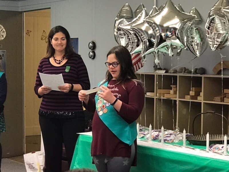 Throughout the years we’ve had many conversations with the Troop about Down syndrome. The girls are great with her and show their support by attending The Buddy Walk. For the Troops’ Bronze Project they chose to organize a Hawaiian themed dance for the Flower City Down syndrome network.”