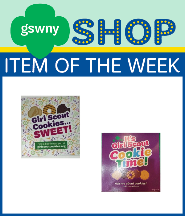 Display these to let everyone know you’re a Girl Scout selling cookies! Options include “Girl Scouts…SWEET!” and “It’s Girl Scout Cookie Time!”