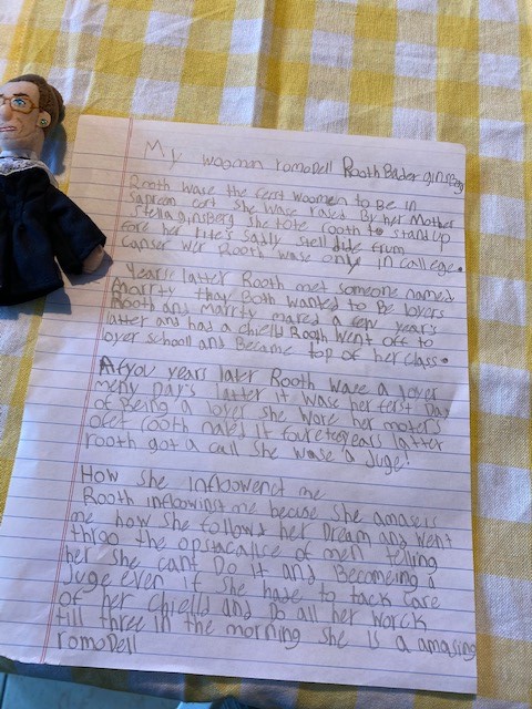 Note: Lexi’s submission was only edited for spelling. Sandra Day O’Connor was the first woman appointed to the Supreme Court, but that doesn’t take away from the amazing life of Ruth Bader Ginsburg.