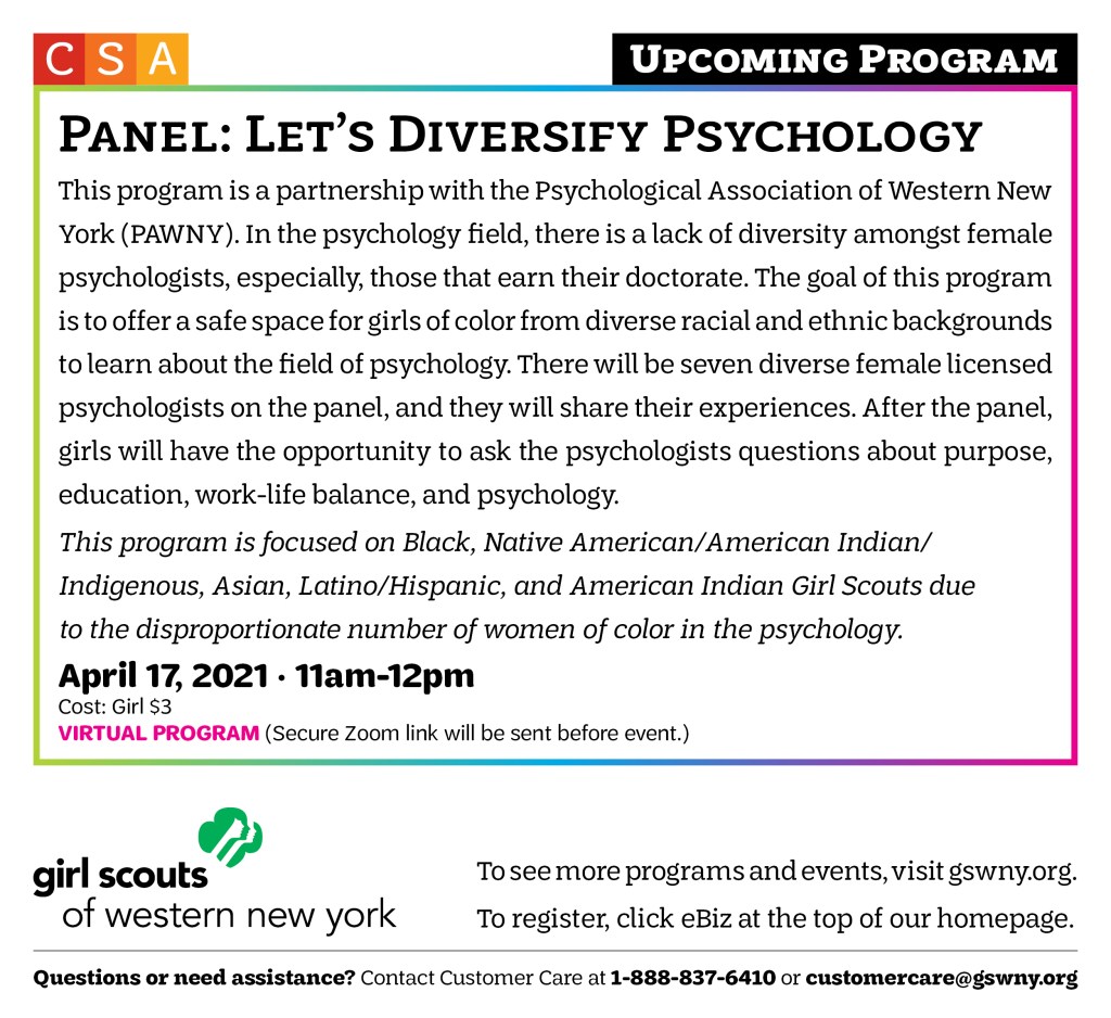 We are #GirlScoutStrong! Looking forward to talking to you next Tuesday! In the meantime, don’t hesitate to reach out to us at Customer Care customercare@gswny.org or call 1-888-837-6410. In an emergency, please call 1-800-882-9268.