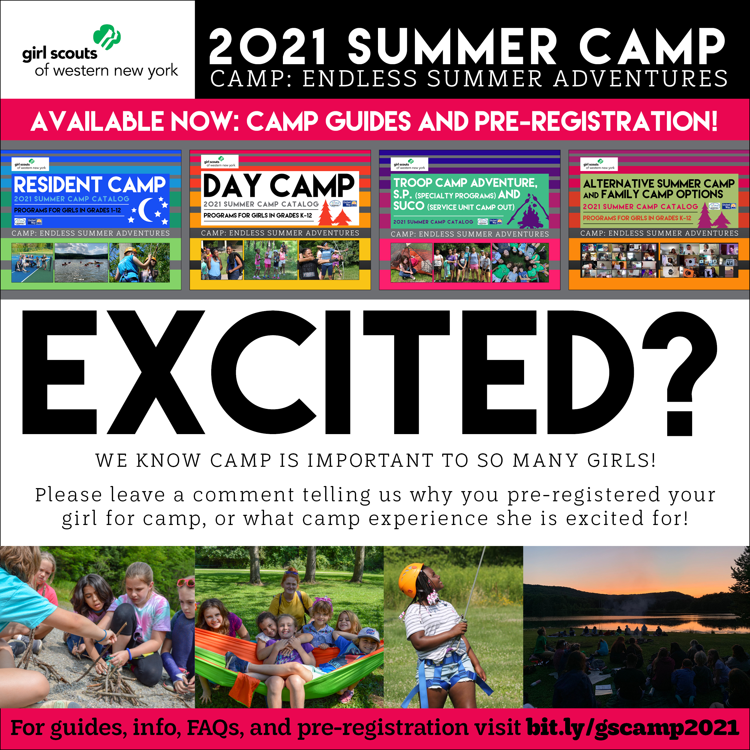 Due to low attendance we will be cancelling the Sat., April 24 Taste of Camp Event at Camp Timbercrest. We will still be offering our Taste of Camp Event at Camp Seven Hills on Saturday, May 1 from 1-3. Please pre-register to attend by visiting bit.ly/gscamp2021 today!