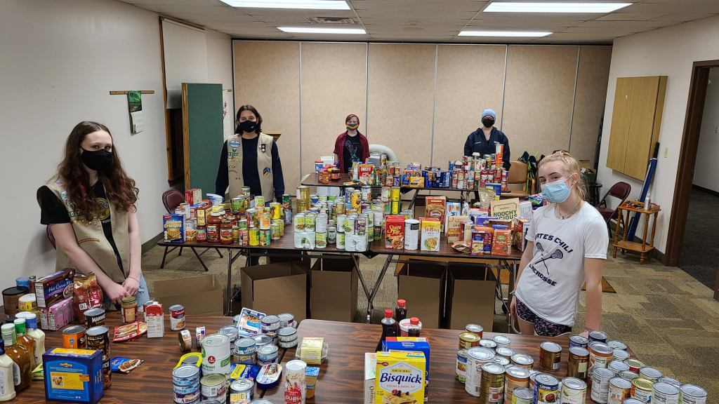 Troop 60592 (Gates Chili Service Unit) held a Food Drive recently. Each girl passed out flyers and collected food donations from their neighborhoods, then sorted and boxed it up. They chose 2 food cupboards to benefit: St Theodore’s Food Pantry and House of Mercy. Each cupboard will receive 13 boxes of donations.