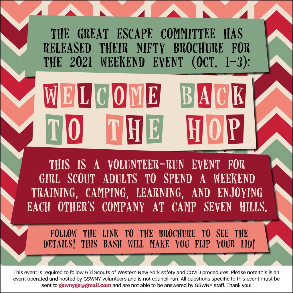 Please direct all questions to the Great Escape volunteer committee at the Great Escape Weekend group on Facebook or gswnyge@gmail.com.