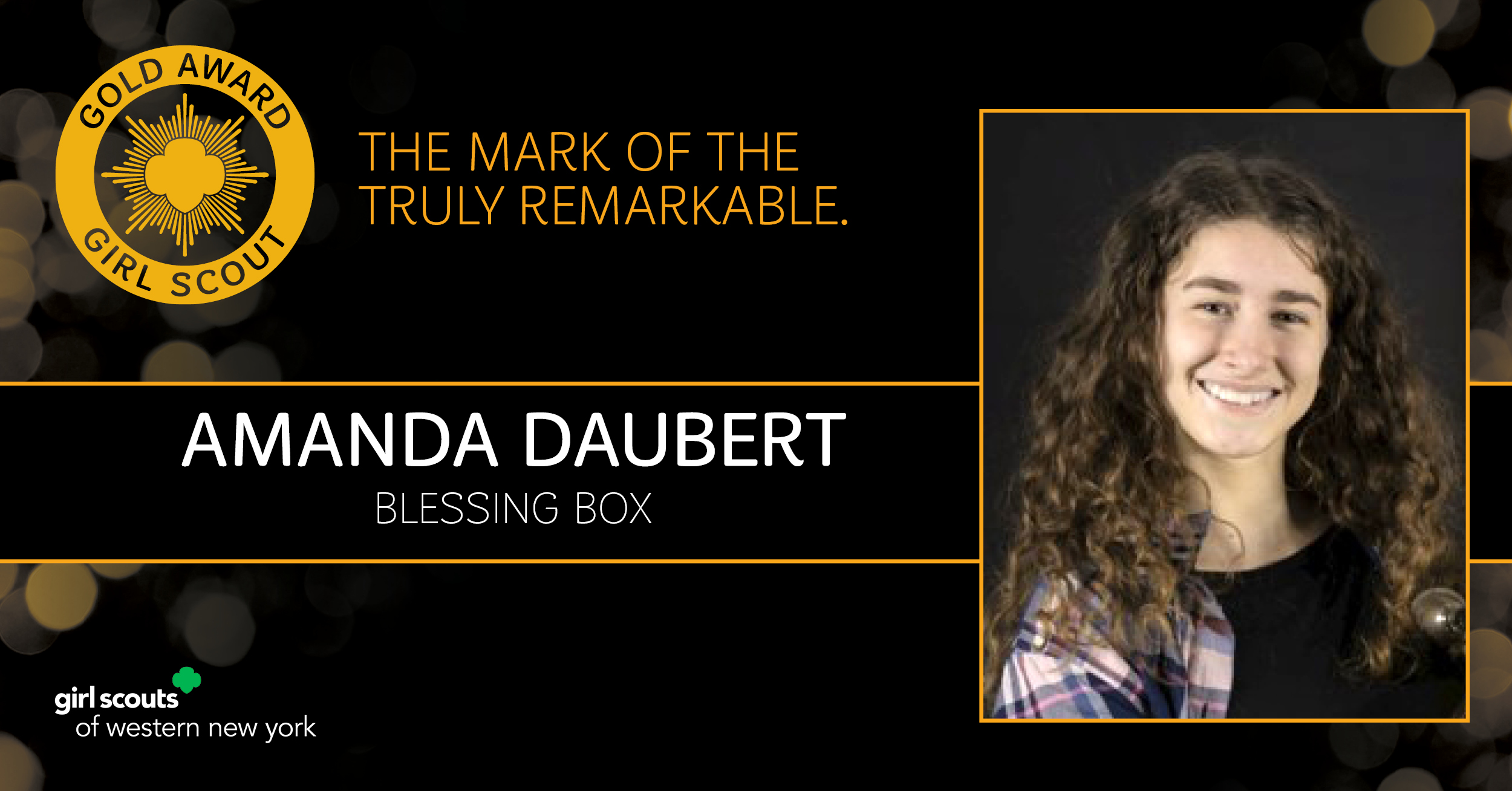 Girl Scouts of Western New York is proud to announce Amanda Daubert of Spencerport, NY, as a 2021 Gold Award Girl Scout. Amanda is from Troop 60727 and has been a member of Girl Scouts for 13 years.