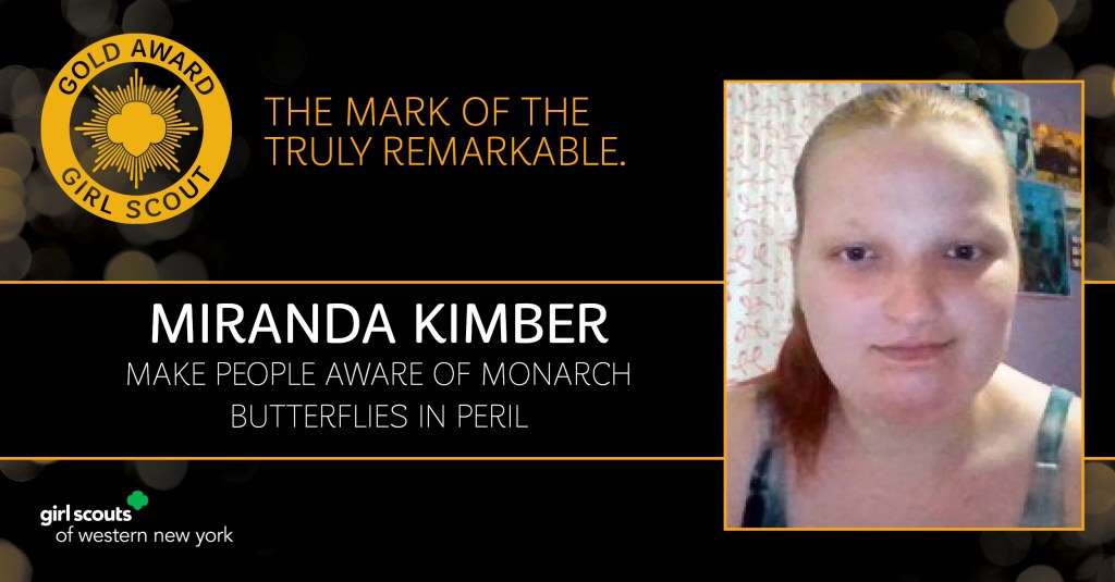 Girl Scouts of Western New York is proud to announce Miranda Kimber of Middleport, NY, as a 2021 Gold Award Girl Scout. Miranda is from Troop 70095 and has been a member of Girl Scouts for 14 years.