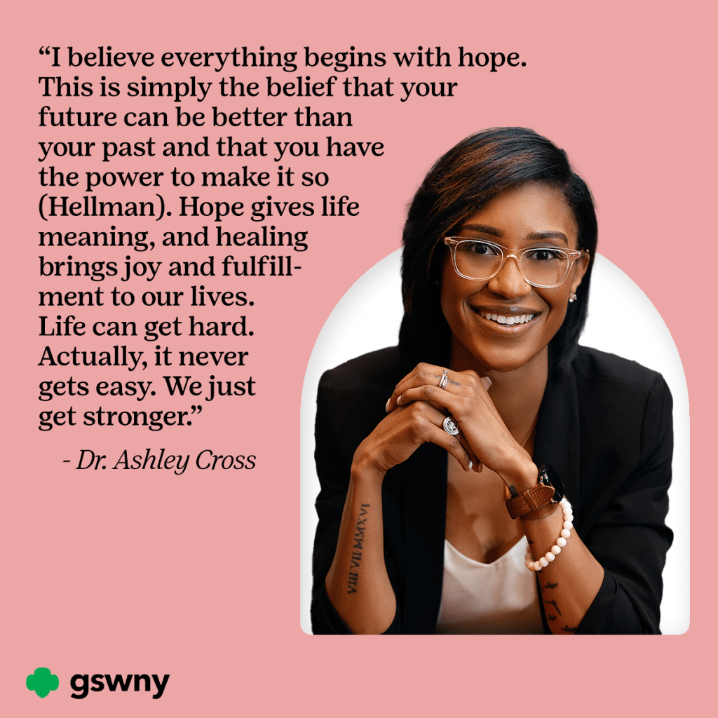 I believe everything begins with hope. This is simply the belief that your future can be better than your past and that you have the power to make it so (Hellman). Hope gives life meaning, and healing brings joy and fulfillment to our lives. Life can get hard. Actually, it never gets easy. We just get stronger. When we provide healing and promote hope, we are developing a safe space for women to be human and to be seen and cared for. When we do this, we get better, and we get stronger. Furthermore, when women who lead understand the power of healing and hope, they cultivate spaces for those who follow them to be recipients of the power of hope and healing.