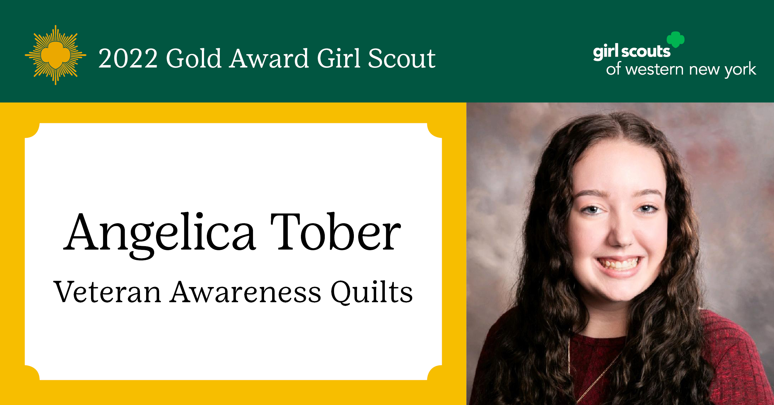 Girl Scouts of Western New York is proud to announce Angelica Tober of Hamburg, NY, as a 2022 Gold Award Girl Scout. Angelica is a member of Troop 30856.