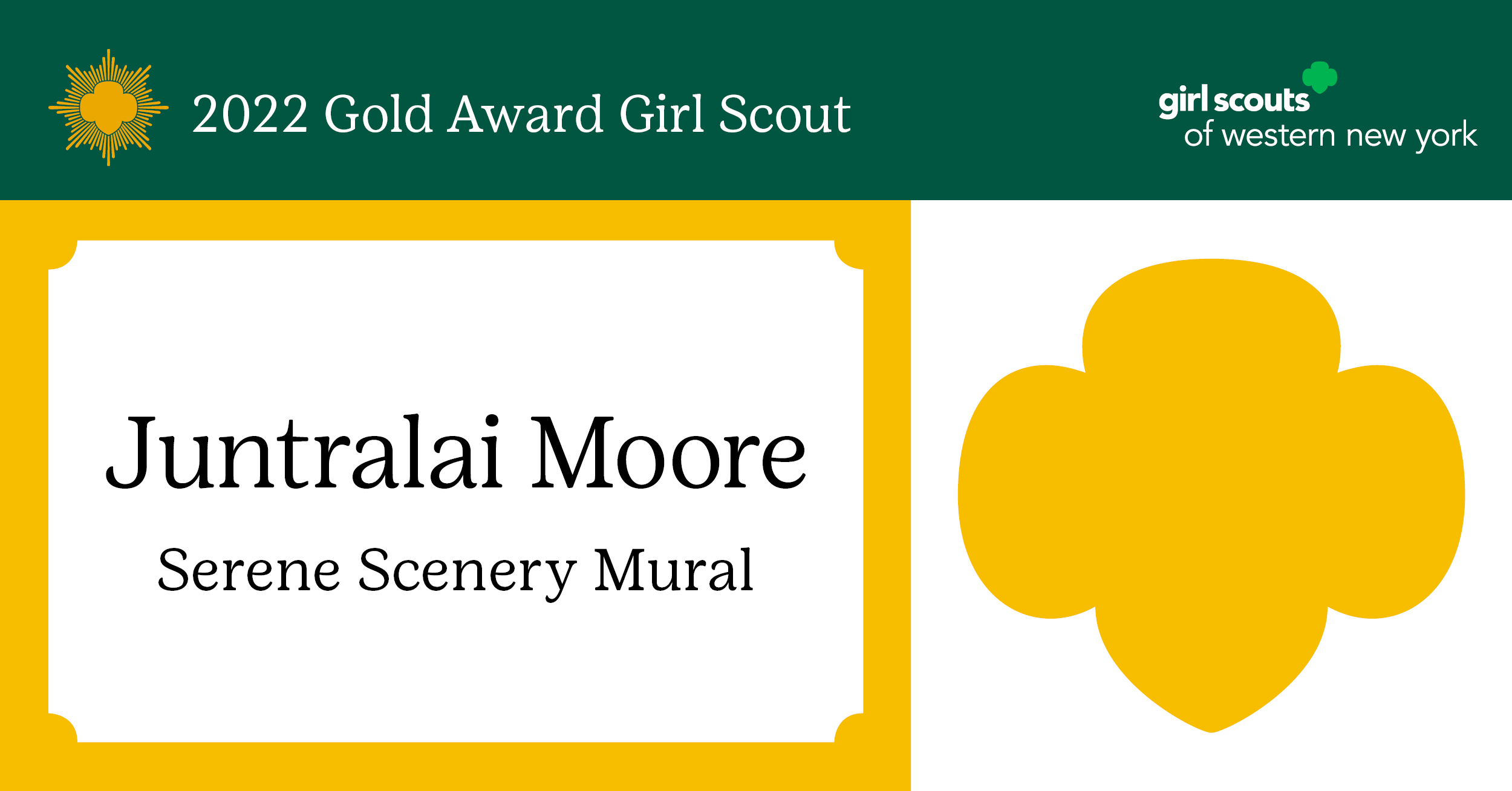 Girl Scouts of Western New York is proud to announce Juntralai Moore of Orchard Park, NY, as a 2022 Gold Award Girl Scout. Juntralai is a member of Troop 31339.