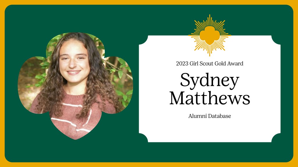 Girl Scouts of Western New York is proud to announce Sydney Matthews as a 2023 Gold Award Girl Scout.
