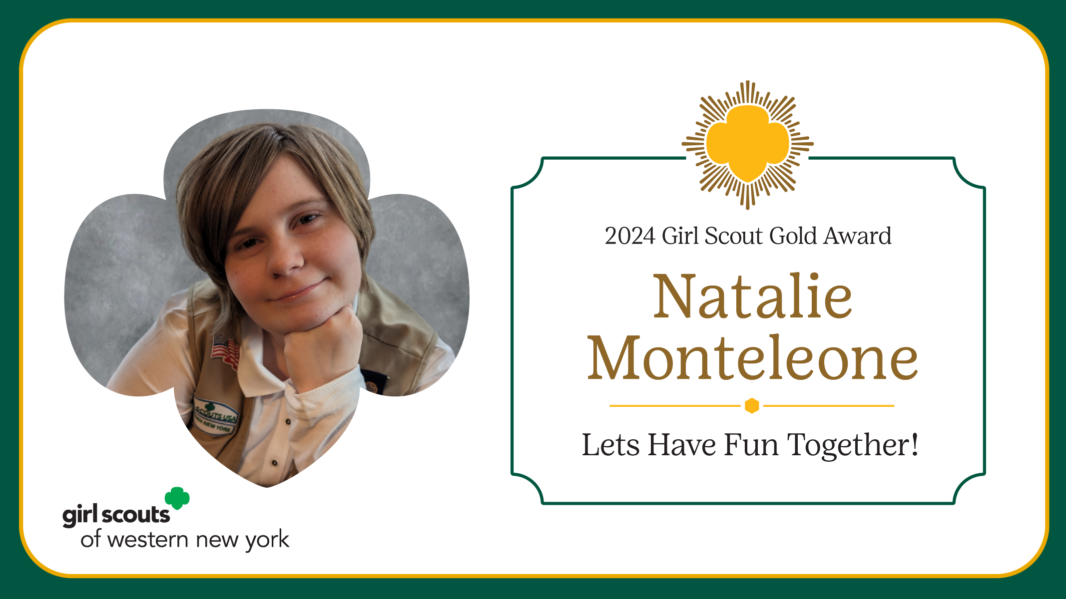 Girl Scouts of Western New York is proud to announce Natalie Monteleone as a 2024 Gold Award Girl Scout.