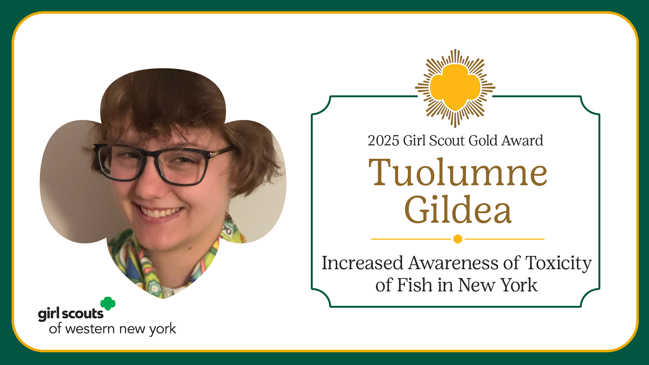 Girl Scouts of Western New York is proud to announce Tuolumne Gildea as a 2025 Gold Award Girl Scout.