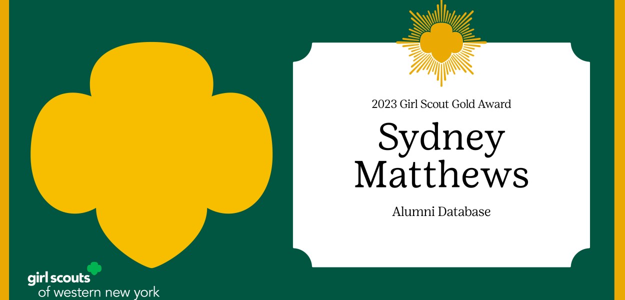 Girl Scouts of Western New York is proud to announce Sydney Matthews as a 2023 Gold Award Girl Scout. Project: Alumni Database For my Gold Award project I partnered with Geneseo Central school to develop an alumni data base aimed to assist with students’ networking and enhance students’ […]