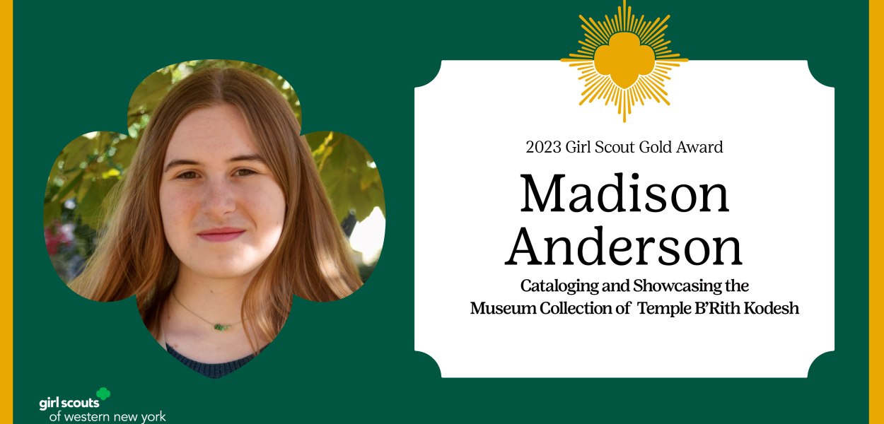 Girl Scouts of Western New York is proud to announce Madison Anderson of Rochester, NY, as a 2023 Gold Award Girl Scout. Madison is a member of Troop 60570. Project: Cataloging and Showcasing the Museum Collection of Temple B’Rith Kodesh I organized, cataloged, and curated the collection of […]