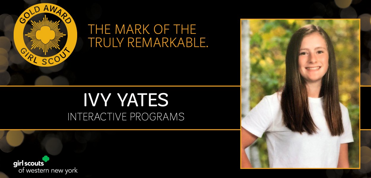 Girl Scouts of Western New York is proud to announce Ivy Yates of Honeoye Falls, NY, as a 2021 Gold Award Girl Scout. Ivy is from Troop 63438 and has been a member of Girl Scouts for 8 years.