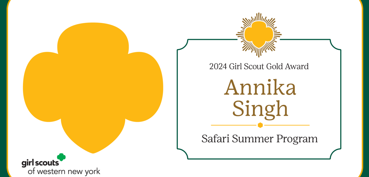 Girl Scouts of Western New York is proud to announce Annika Singh as a 2024 Gold Award Girl Scout. Project: Safari Summer Program Developing a program itinerary for one week of safari-themed Girl Scout Day camp, serving as the program director for that week of camp (duties involved […]